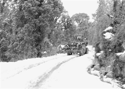 9时30分,救援力量到达距被困务工人员约14公里的亚坪村,因道路积雪厚度超过50厘米,车辆无法继续前行。恰好路边停靠着一辆挖掘机,胡建军上前沟通,得到车主同意后,临时征用挖掘机开路前进。