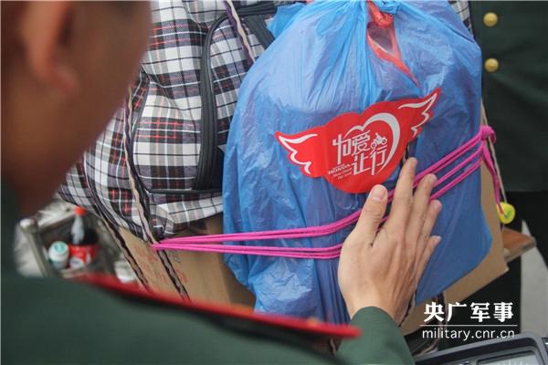 图为官兵为旅客贴“让爱回家”标签。李晟昊摄