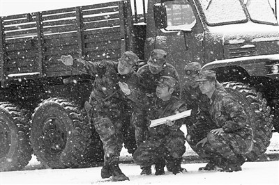 陕西某预备役炮兵团风雪中演练应急处突(图)
