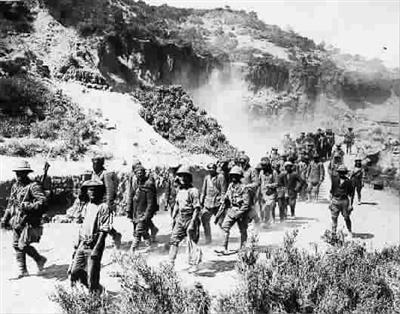 ■ 在加利波利战役期间,英军押送被俘的土耳其士兵离开战场