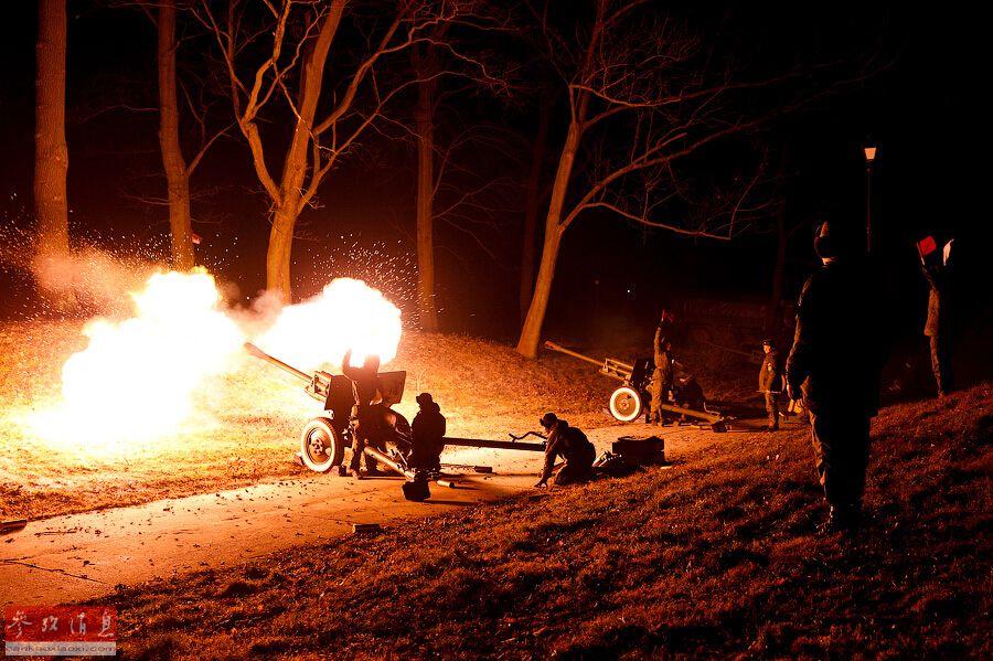 资料图:加里宁格勒的俄罗斯炮兵部队开炮庆祝“祖国保卫者”日。