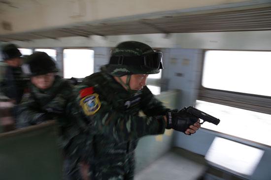刘洋带领特战队员进行列车反劫持训练。 李光印/摄