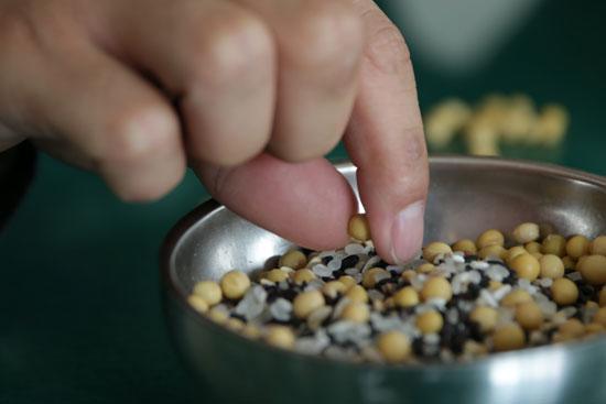 为提高射击分辨力,刘洋经常进行分离大米、黄豆、黑豆训练。 李光印/摄