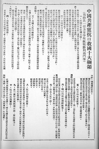 洛川会议通过的相关文件。