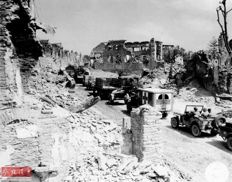 资料图:1944年7月,美军部队开进圣洛。