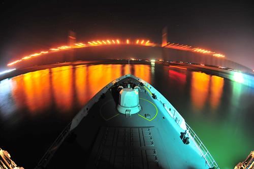 中国海军护航编队经苏伊士运河返航 夜景绚丽(图)