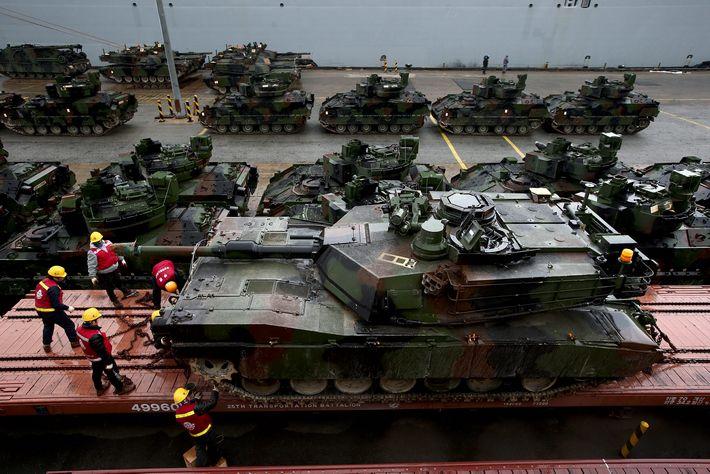 2014年,韩国调遣重装武器与美联合军演(资料图)
