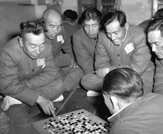 管理所里设立医务室和专职医生、护士,定期为战犯们检查身体,有病及时治疗,还帮助他们镶牙、配眼镜、安装假肢,还有澡堂和理发室,定时让战犯们洗澡、理发。此外,战犯管理所经常组织开展文娱、体育活动。图为1956年日本战犯在下棋。