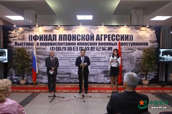 展览100多块展板,展出图片600余幅。由“接收关押”、“教育改造”、“正义审判”和“为了和平”四个部分组成,利用实物、图片、文字、视频,详细而真实的讲述了中国成功教育改造日本战犯的历史过程。开幕式上,俄罗斯二战老兵、俄中友协、俄罗斯卫国战争纪念馆、国务院新闻办公室、辽宁省政府新闻办等部门负责人先后致辞。
