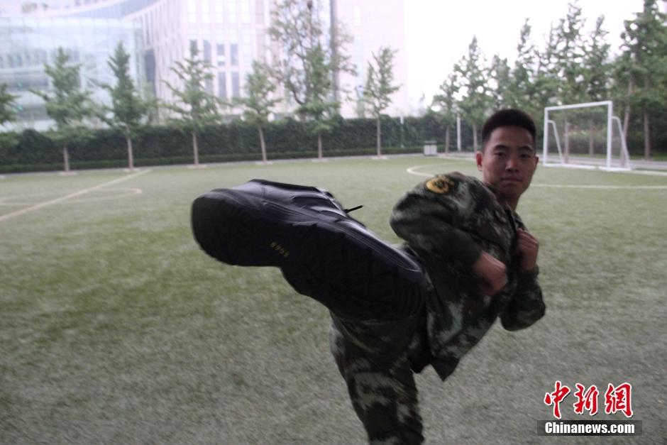 穿上刚刚下发的新式作训鞋,武警北京总队七支队十二中队战士们欢欣鼓舞,训练热情大大激发。马逸飞 摄