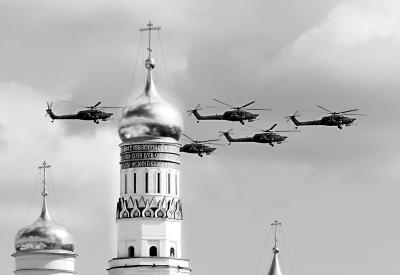 5月9日,俄罗斯大阅兵,直升机编队飞越红场。