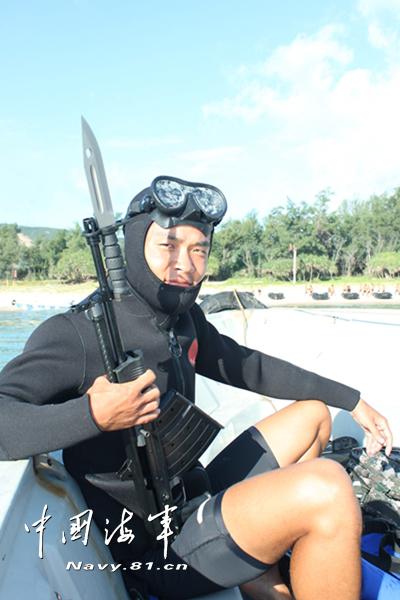 李烨睿在参加水下渗透训练。