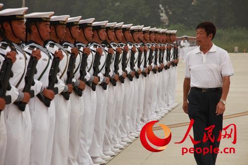 2009年阅兵孙启华在检查训练情况。高密 摄