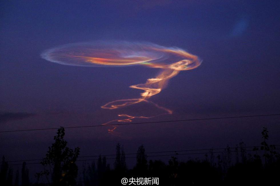 11月1日早上7点左右,在新疆伊犁新源县吐尔根乡东南偏东方向,天空中出现不明发光炫丽云团。随后,在新源县广场、特克斯县以及库尔勒等多地,都有目击者看到。目前,还没有专家证实这究竟是什么现象。(央视记者崔宁 梁洋)