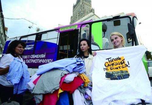 2014年9月23日~10月6日,莫斯科普希金广场开展了抗议西方制裁的“交换T恤”活动,参与者可用印着外语的T恤衫免费换得印有俄文爱国标语的T恤衫。