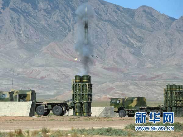 在“火力-2015·山丹A”演习现场,某新型防空导弹抗击高空目标(2015年7月6日摄)。 新华社发(刘逢安摄)