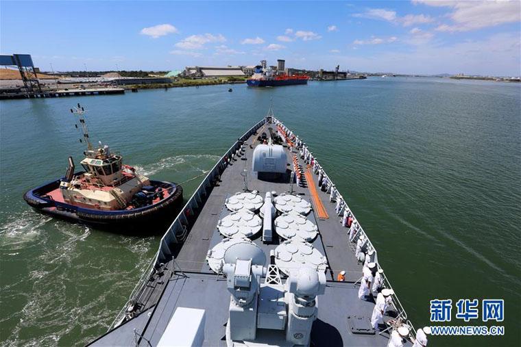 1月2日,中国海军济南舰驶入澳大利亚布里斯班码头。