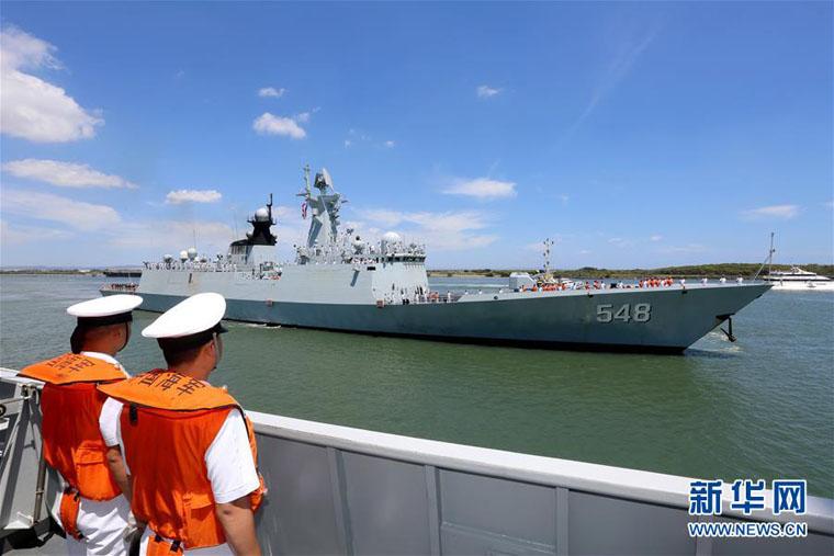 1月2日,中国海军益阳舰驶入澳大利亚布里斯班码头,准备并靠济南舰。