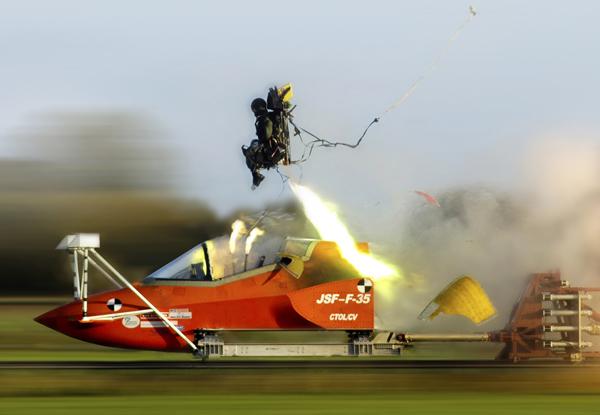 资料图:F-35专用的US16E弹射座椅进行地面测试。