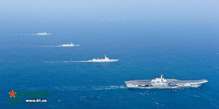 3月下旬,辽宁舰与多艘新型驱护舰组成编队,赴渤海某海域开展舰机融合、编队协同等实战化课题训练。