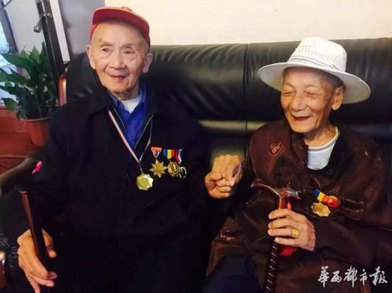当天,华西都市报记者有幸目睹了,这一历史性的画面。黄效如说,能见上当年打鬼子的战友,感觉特别亲切,聊的话也更多了。