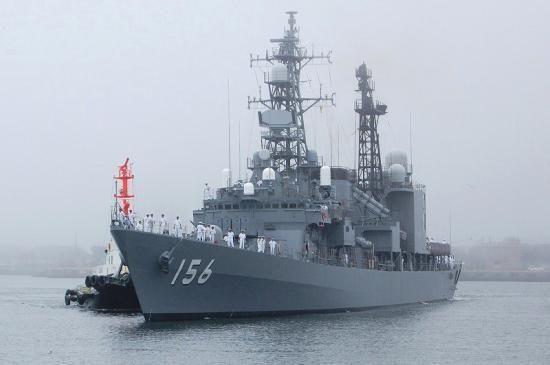 资料图:日本海上自卫队出动的对中俄两国的军舰进行监视跟踪的护卫舰“濑雾”号。
