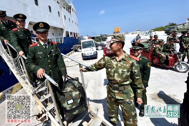 官兵们迎接上岛换勤的战友 杨瑞明 摄