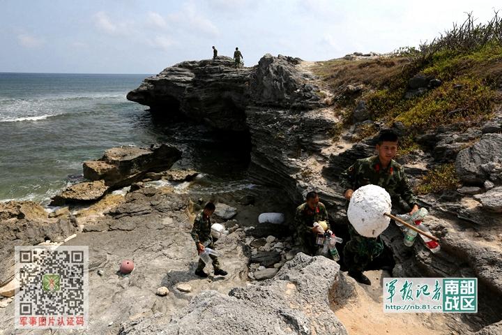 在西沙老龙头(石岛)官兵捡拾岛上垃圾 杨瑞明 摄