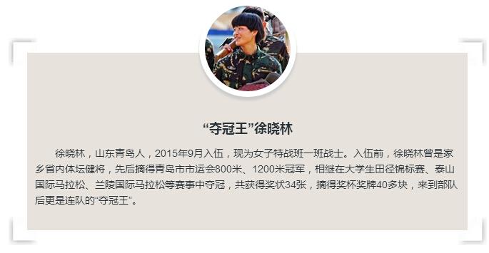 “此次考核,徐晓林综合成绩第二名!”考核结束,连长看着手中的成绩统计表不禁惊呼,“入伍还没满一年,这个女兵太牛了!”