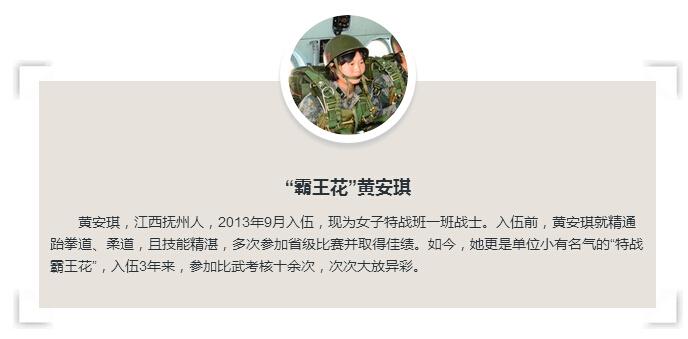 成功“猎杀”目标的正是黄安琪。“这次带实战背景的特战尖子比武,云集了集团军部队100多名训练尖子、武教头,黄安琪硬是将许多男兵撂趴下,打得他们心服口服!”班长对这位得力干将赞不绝口。