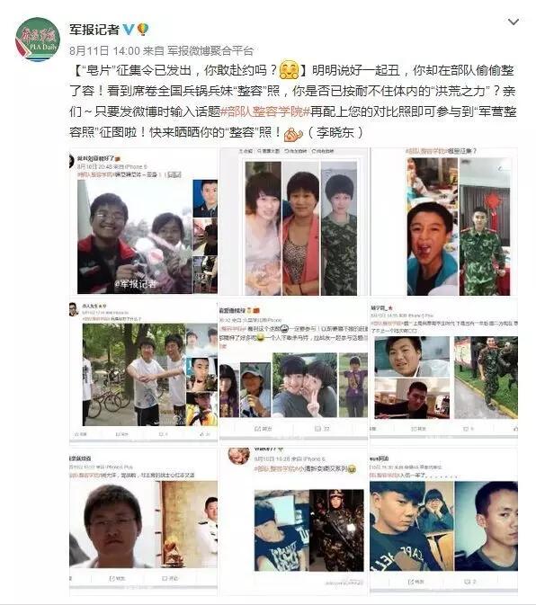 参与互动 @军报记者微博微信热门话题“部队整容学院”引爆网络——