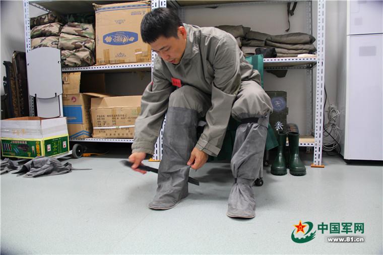 “请您更换防毒服,进行气密检查。”一位年轻的工作人员向记者发出指令。接过深褐色的防毒服,按照提示,穿上防毒衣裤和靴子、戴上防毒面具和防毒手套,与同行伙伴熟练而快速的动作相比,记者显得笨拙了很多。即使这样,同行伙伴依然向记者竖起了拇指:“第一次就能够心不慌手不乱,不容易。”