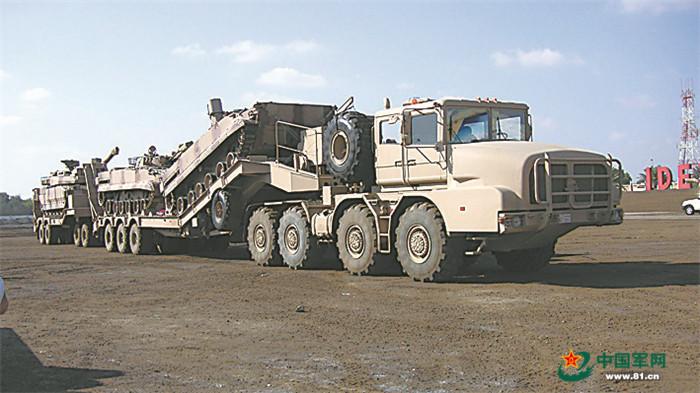 美军从“沙漠盾牌”行动开始,在此后的几个月里,从本土将大量的人员、装备和物资通过海上、空中运抵海湾地区的港口和机场。“沙漠盾牌”行动中,在港口就卸下了600多艘船只运输的货物,在机场卸下了10.5万架次的空运物资。这些堆积如山的物资能否及时、安全地运送到野战阵地,直接关系着美军的行动以及战争的进程和结局。把大批的货物运送到各野战阵地只有两种方式,即空运和陆路运输。由于海湾地区铁路根本形不成气候,货物到达机场最终主要靠汽车发送出去,军用挂车因此发挥了不可替代的重要作用。