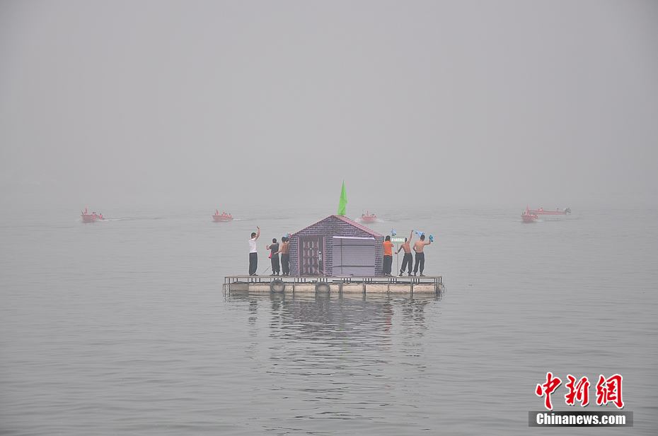 冲锋舟直线编队演练。陈海峰 摄