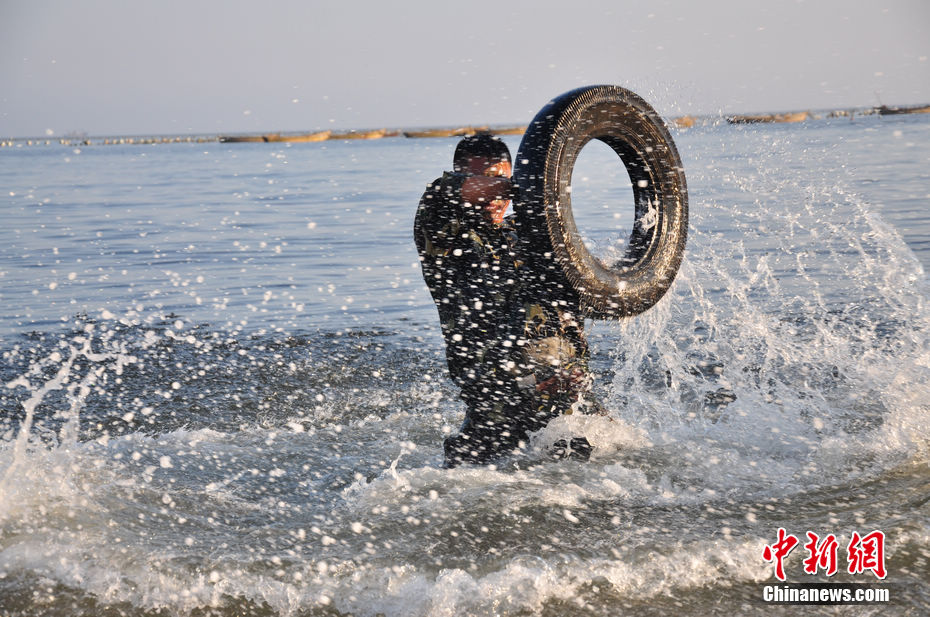 特战队员进行海上科目训练。陈海峰 摄