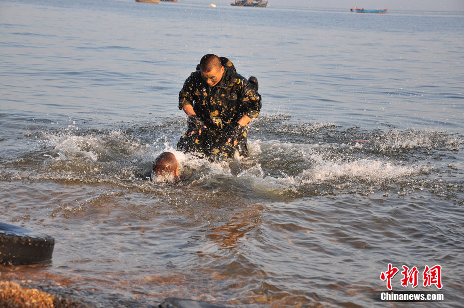 特战队员进行海上擒拿格斗训练。陈海峰 摄