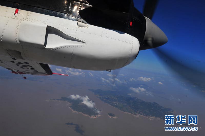 中国海监固定翼飞机B-3837在浙江海岛上空进行海岛保护专项巡查(10月17日摄)。新华社记者 张建松 摄