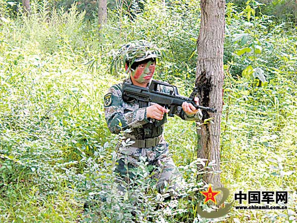 女侦察兵向雨进行侦察训练。(刘 松摄)