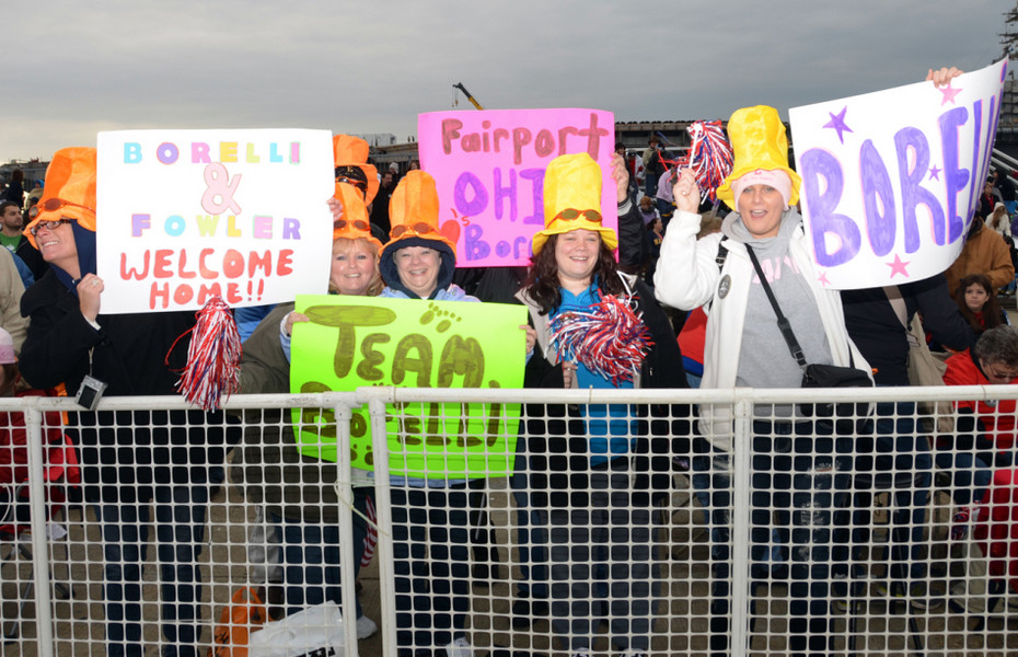 11月4日,企业号航母战斗群舰员家属在码头迎接企业号