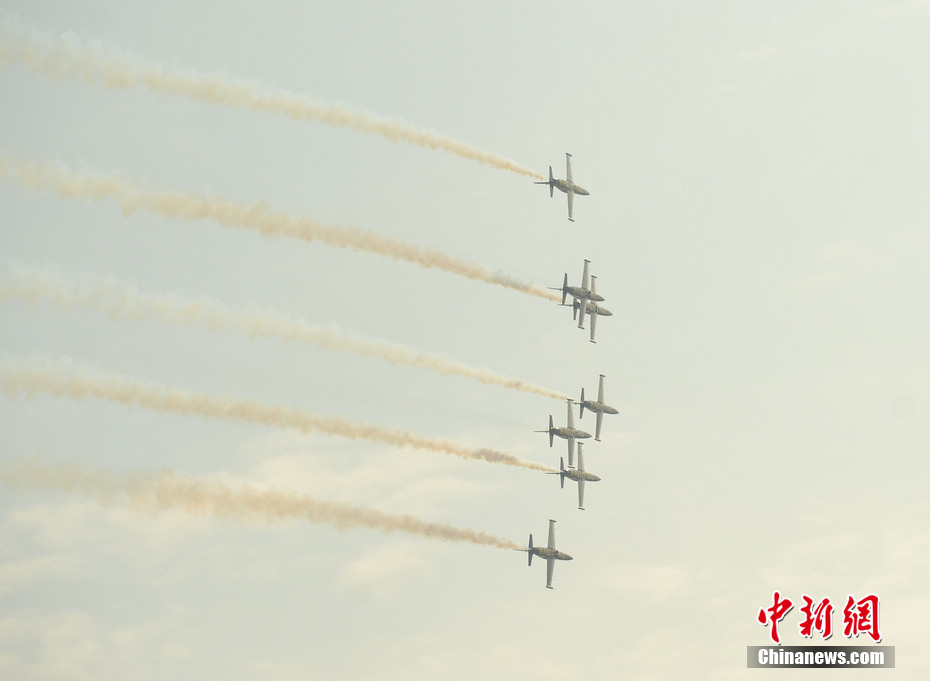 11月11日下午,“百年灵”喷气机特技飞行队在珠海上空进行了精彩飞行表演。陈海峰 摄