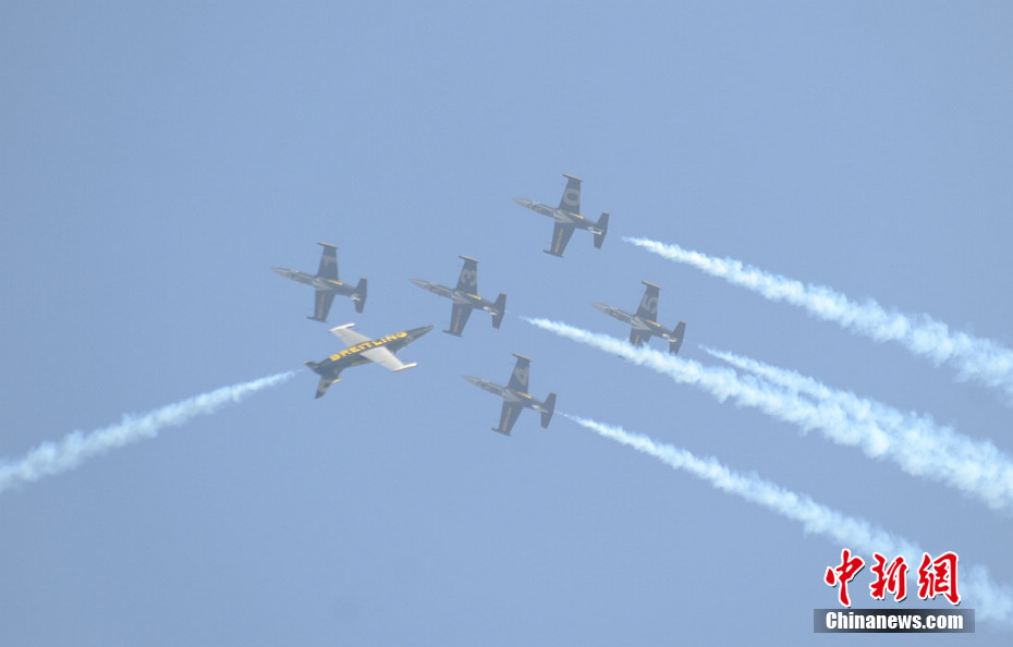 11月11日下午,“百年灵”喷气机特技飞行队在珠海上空进行了精彩飞行表演。陈海峰 摄
