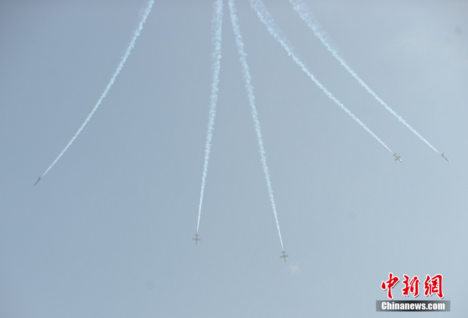 11月11日下午,“百年灵”喷气机特技飞行队在珠海上空进行了精彩飞行表演。陈海峰 摄