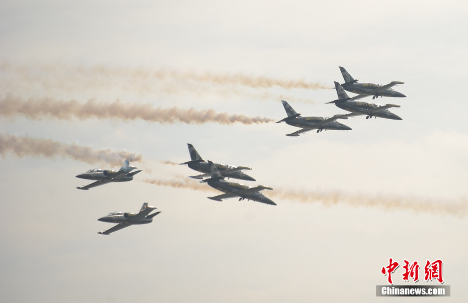 11月11日下午,“百年灵”喷气机特技飞行队在珠海上空进行了精彩飞行表演。陈海峰 摄