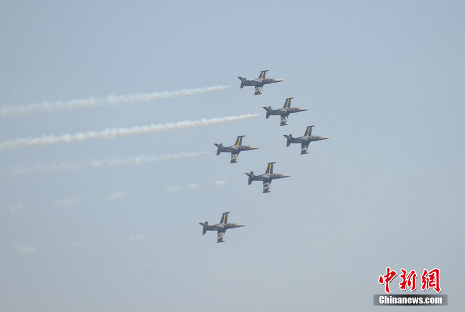 11月11日下午,“百年灵”喷气机特技飞行队在珠海上空进行了精彩飞行表演。陈海峰 摄