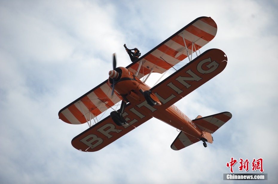 百年灵队表演机翼行走:美女“空中漫步”
