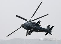 11月13日,我国自主研制生产的武直-10武装直升机亮相在珠海举行的第九届中国国际航空航天博览会,在飞行表演中展示了这款直升机的优良性能。记者乔天富 摄(来源:中国军网)