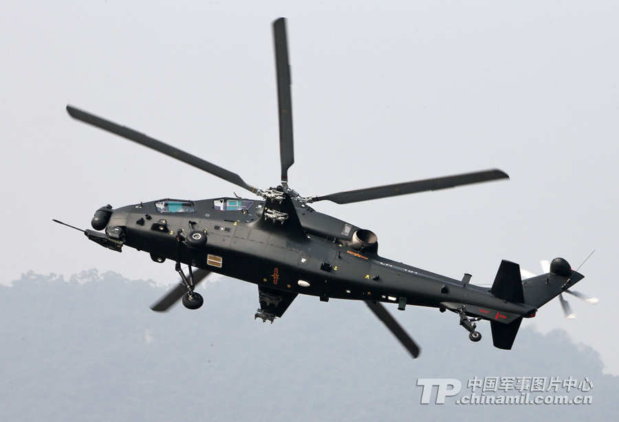 11月13日,我国自主研制生产的武直-10武装直升机亮相在珠海举行的第九届中国国际航空航天博览会,飞行表演展示了这款直升机的优良性能。飞行表演展示了这款直升机的优良性能。记者乔天富摄