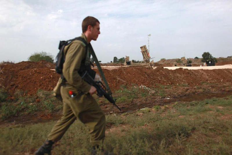 以色列女兵阵地前守卫“铁穹”拦截系统
