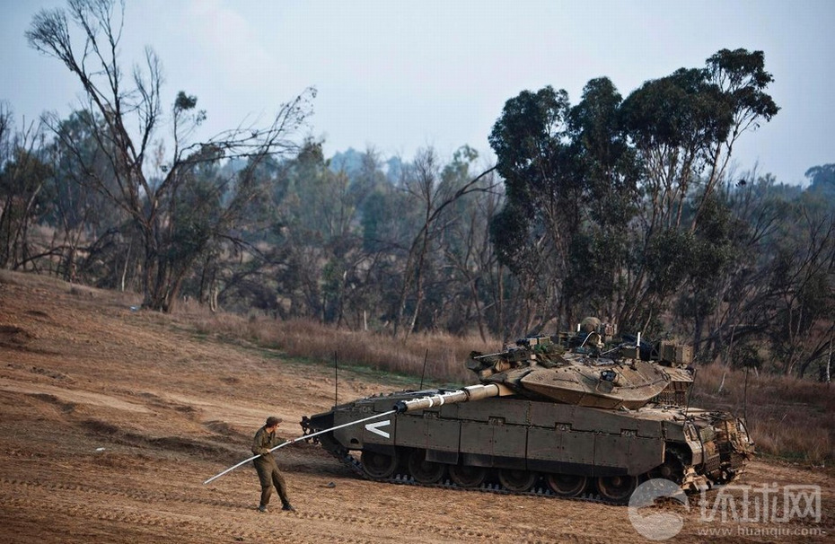 以色列士兵在加沙地带边境附近的一个临时区域休息。