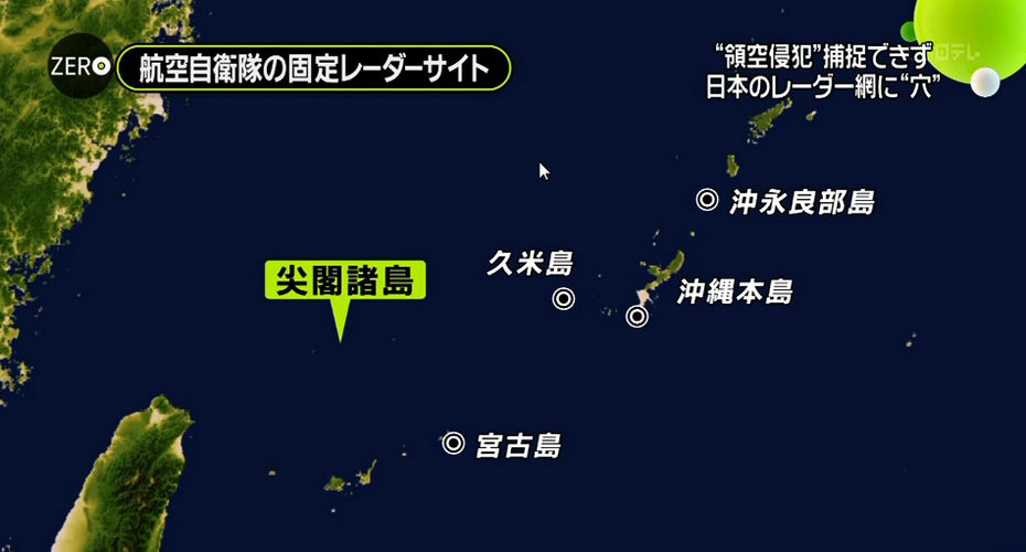 距钓鱼岛上空离最近的雷达站在冲绳县宫古岛,距离钓鱼岛约200公里。